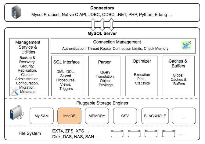 这里先有个整体的MySQL Server的整体概念,详情转向:MySQL的多存储引擎架构