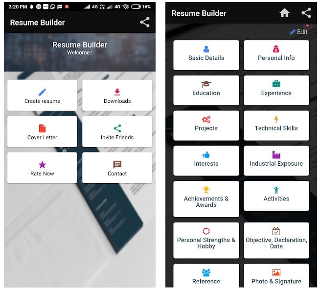 Here you can create your resume from scratch selecting one of the ready-made PDF templates. The app includes 75+ Resume Templates for Freshers & Experienced (Experts).