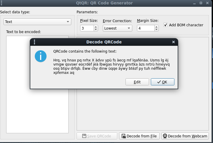 In some cases, especially with some special character, we noticed that QtQR or CoBang are not reading QR codes properly but smartphones are. So it is advised to use smartphones in case QR codes seem not to work.