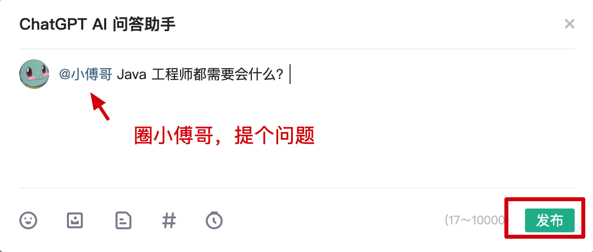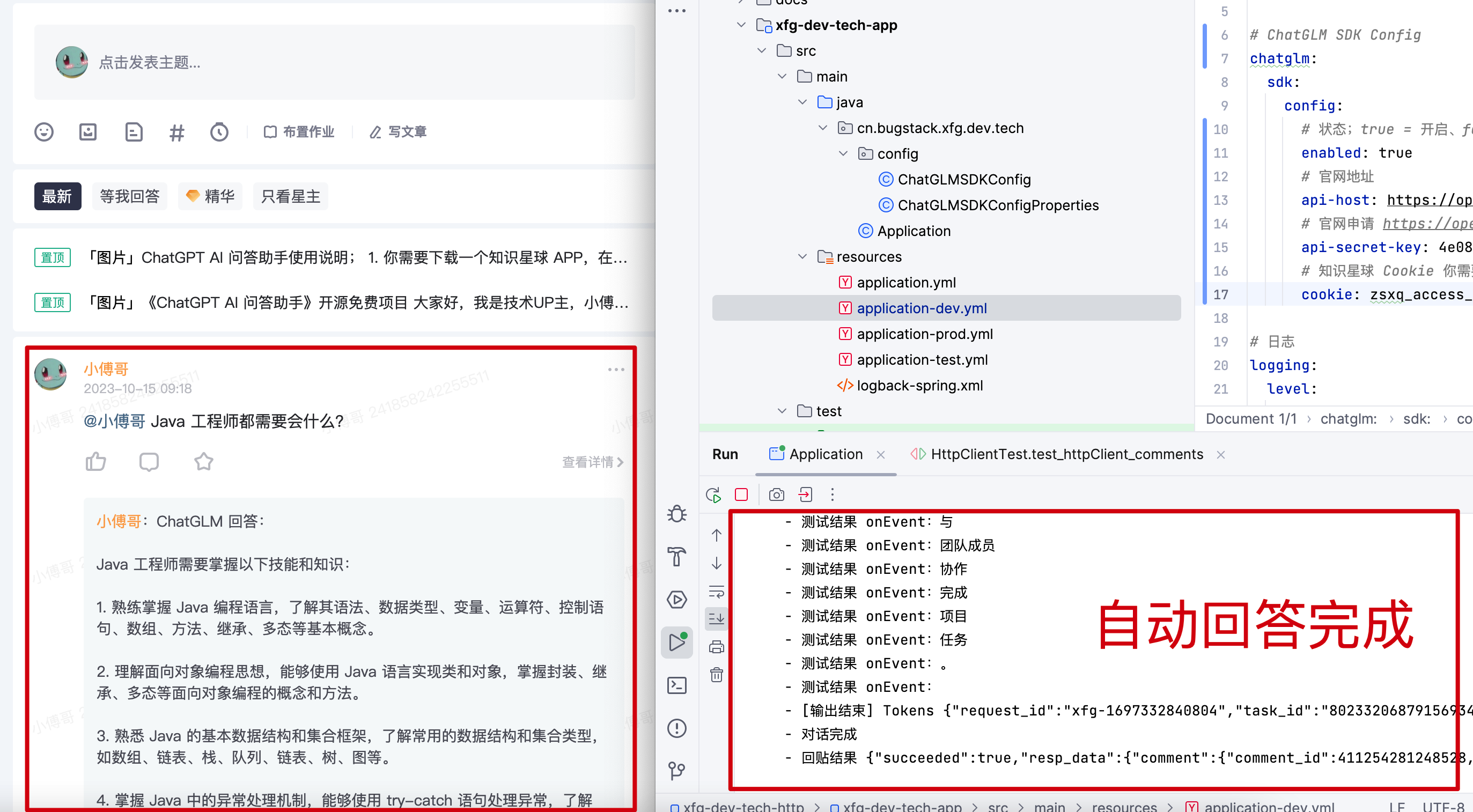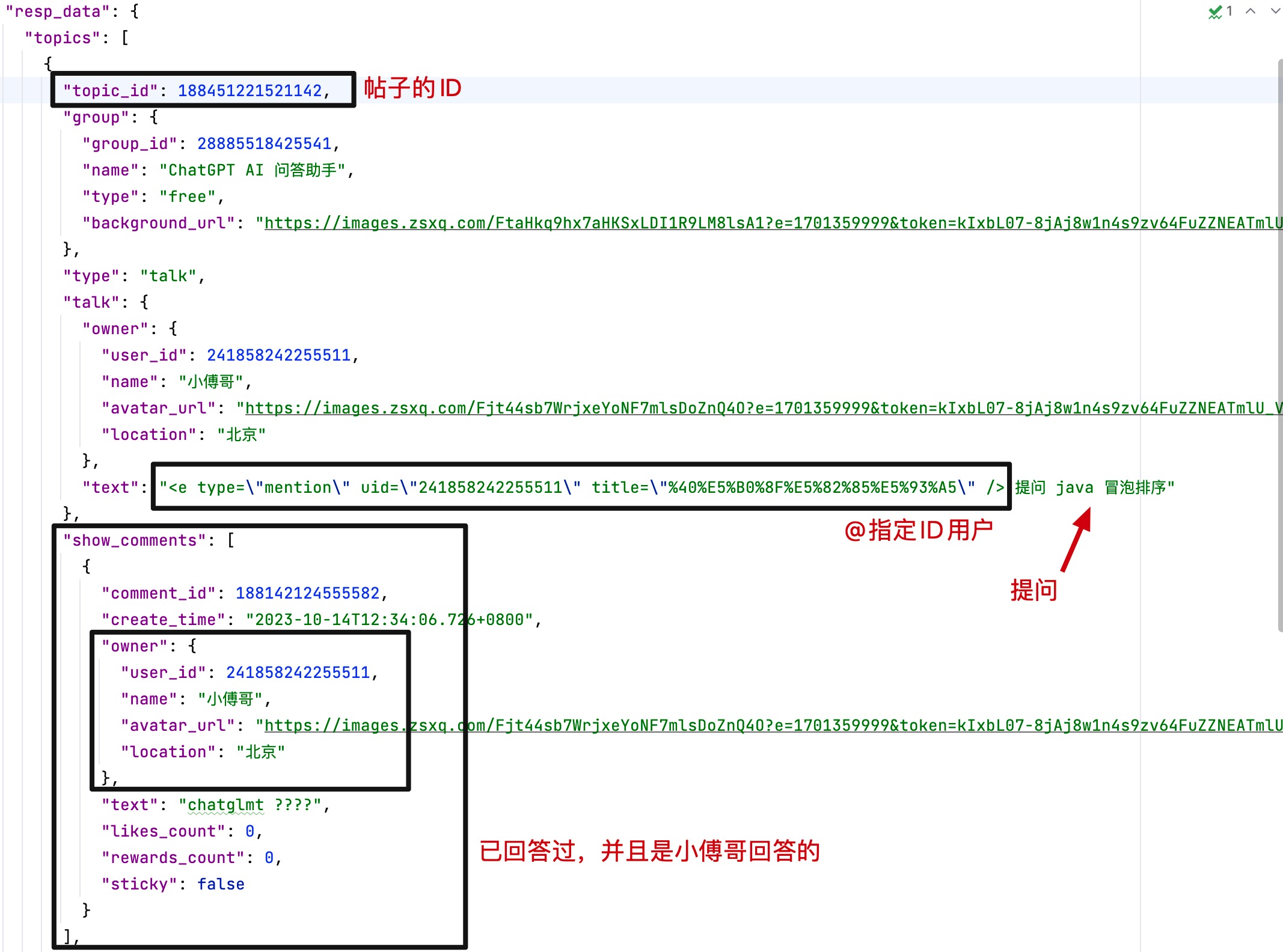 接下来,我结合所学技术锻炼下。结合星球完成一个自动Ai回贴的功能,通过定时任务扫描星球接口帖子,并对未回答且圈【@小傅哥】的帖子进行采集回答。