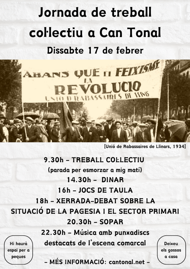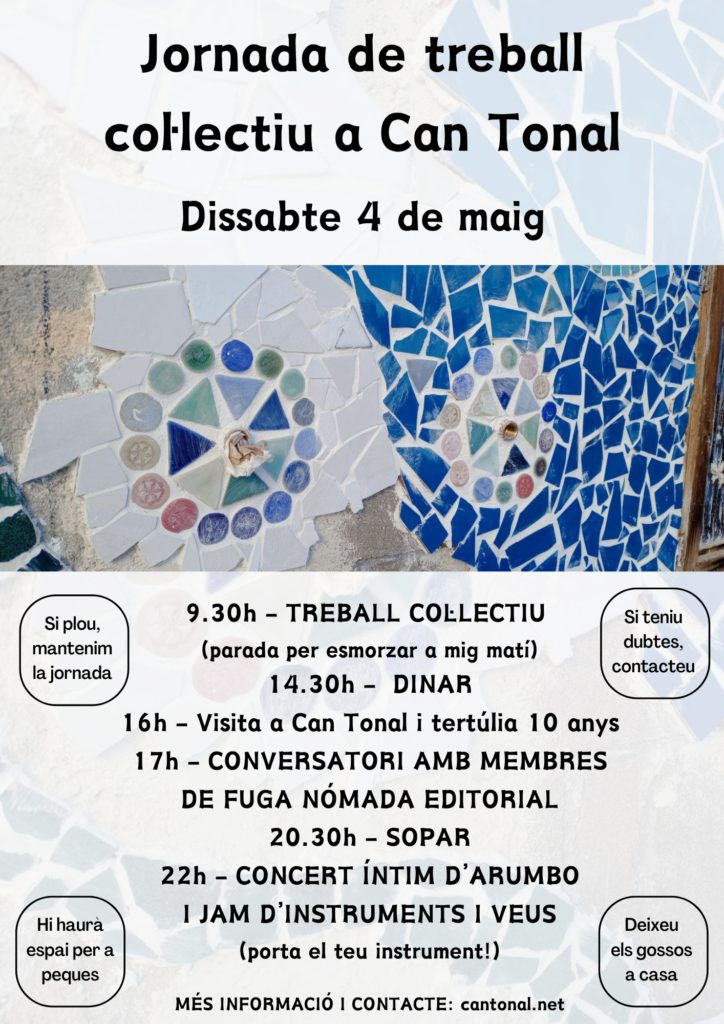 Després de dinar, farem una visita-presentació del projecte de Can Tonal, així com un espai de tertúlia sobre el que s’ha assolit en 10 anys de projecte.
