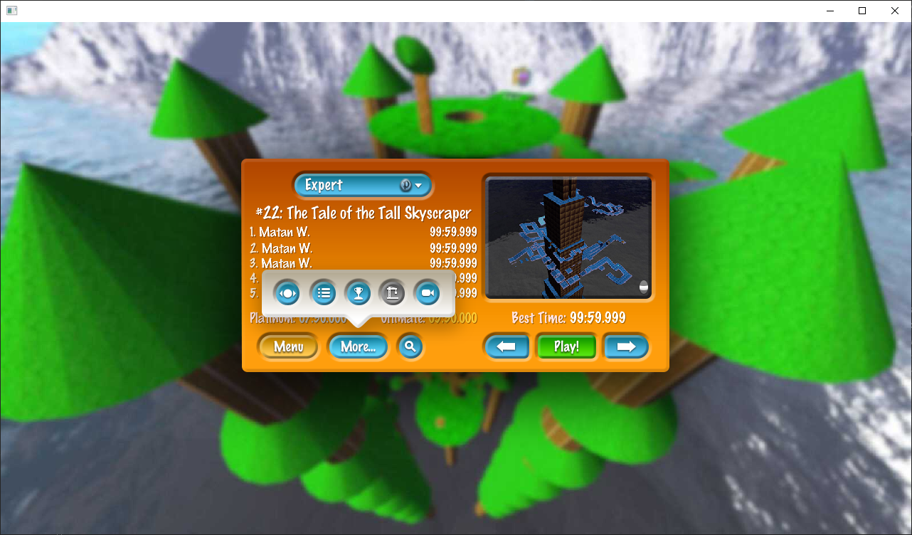 A Haxe port of Marble Blast Gold, Ultra and Platinum, name subject to change. The marble physics code was taken from OpenMBU along with my own collision detection code, game logic was partially from scratch and taken with permission from Marble Blast Web Port.