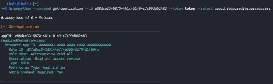 Get details relating to the target application and now dynamically resolves the requiredResourceAccess attribute which contains Graph API role IDs assigned to the application: