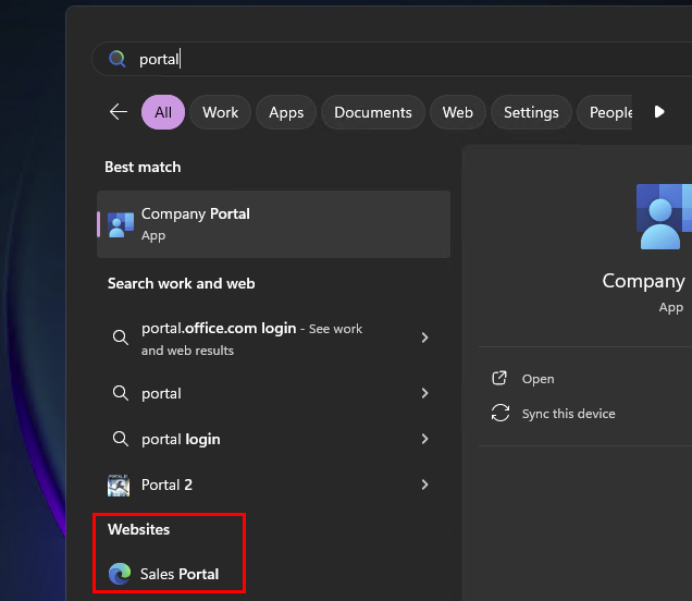 Which can be found when searching for the word portal in the Windows start menu: