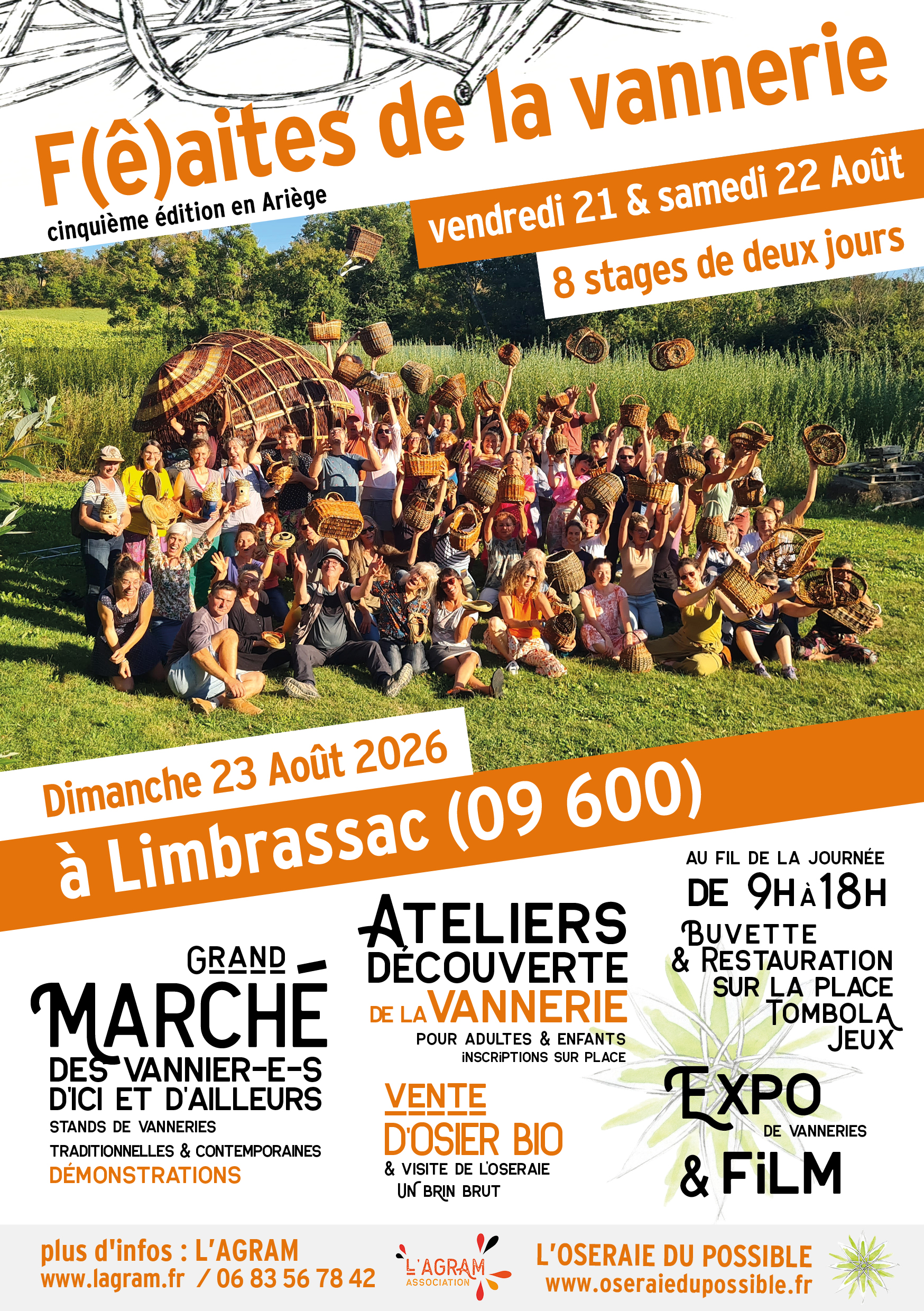 Les vanniers du réseau de L’Oseraie du Possible vous accueillent autour de 8 différentes techniques de vannerie au choix.