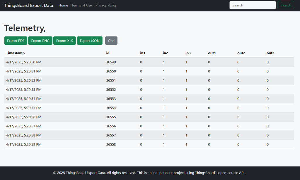 ThingsBoard Export Data is an independent project that utilizes ThingsBoard’s open-source API. It is not affiliated with or endorsed by ThingsBoard, Inc.