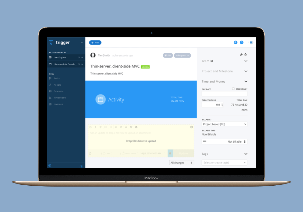 NetEngine built Trigger because we were sick of having to use multiple pieces of software for our project, client and team management, time tracking, invoicing and accounting.