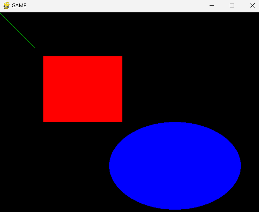 PythonライブラリPygameで画面上に図形(直線、長方形、円)を描画する方法とソースコードを解説します。